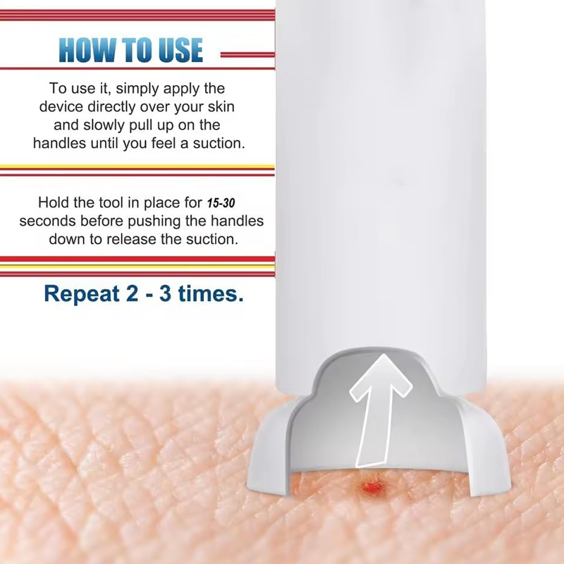 INSTANT TOXIN EXTRACTION: This device uses vacuum suction to safely draw out venom and irritants from mosquito bites, bee stings, and other insect bites. By creating negative pressure, it mimics medical-grade extraction methods without breaking the skin. Ideal for reducing swelling and discomfort within minutes.