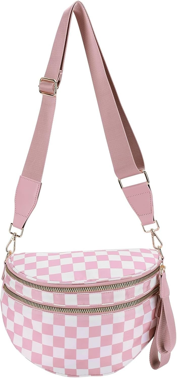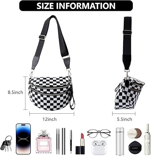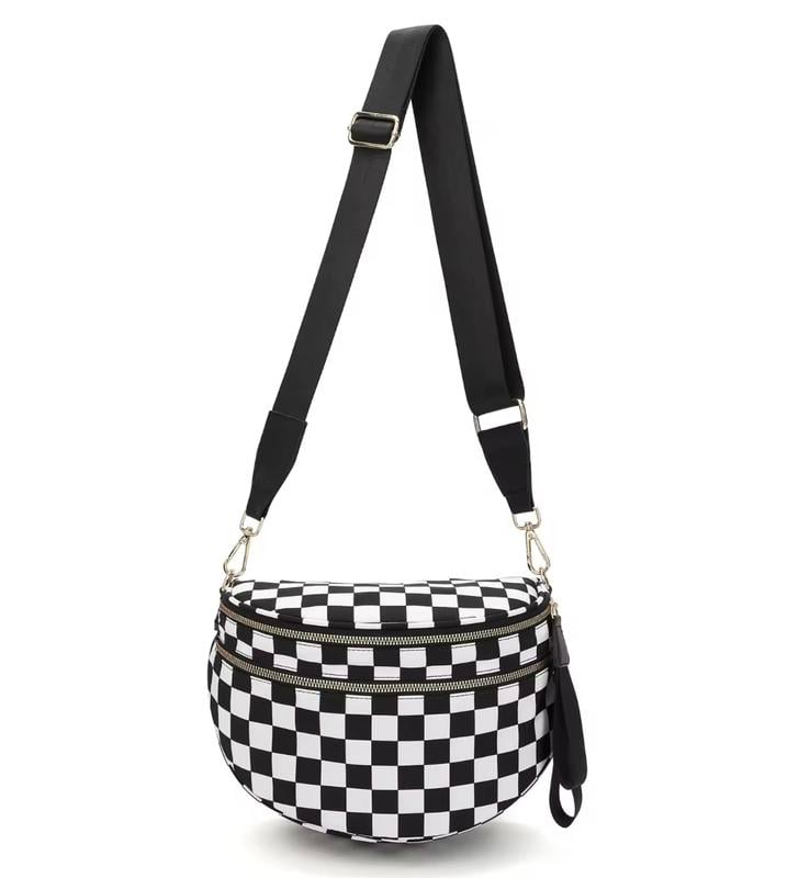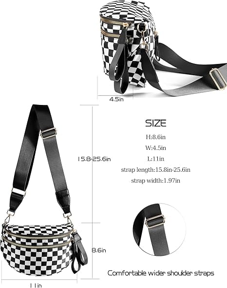 🎁Last Day 49% Off-Black and White Checkered Nylon Bum Bag Plus Size Friendly Fanny Pack