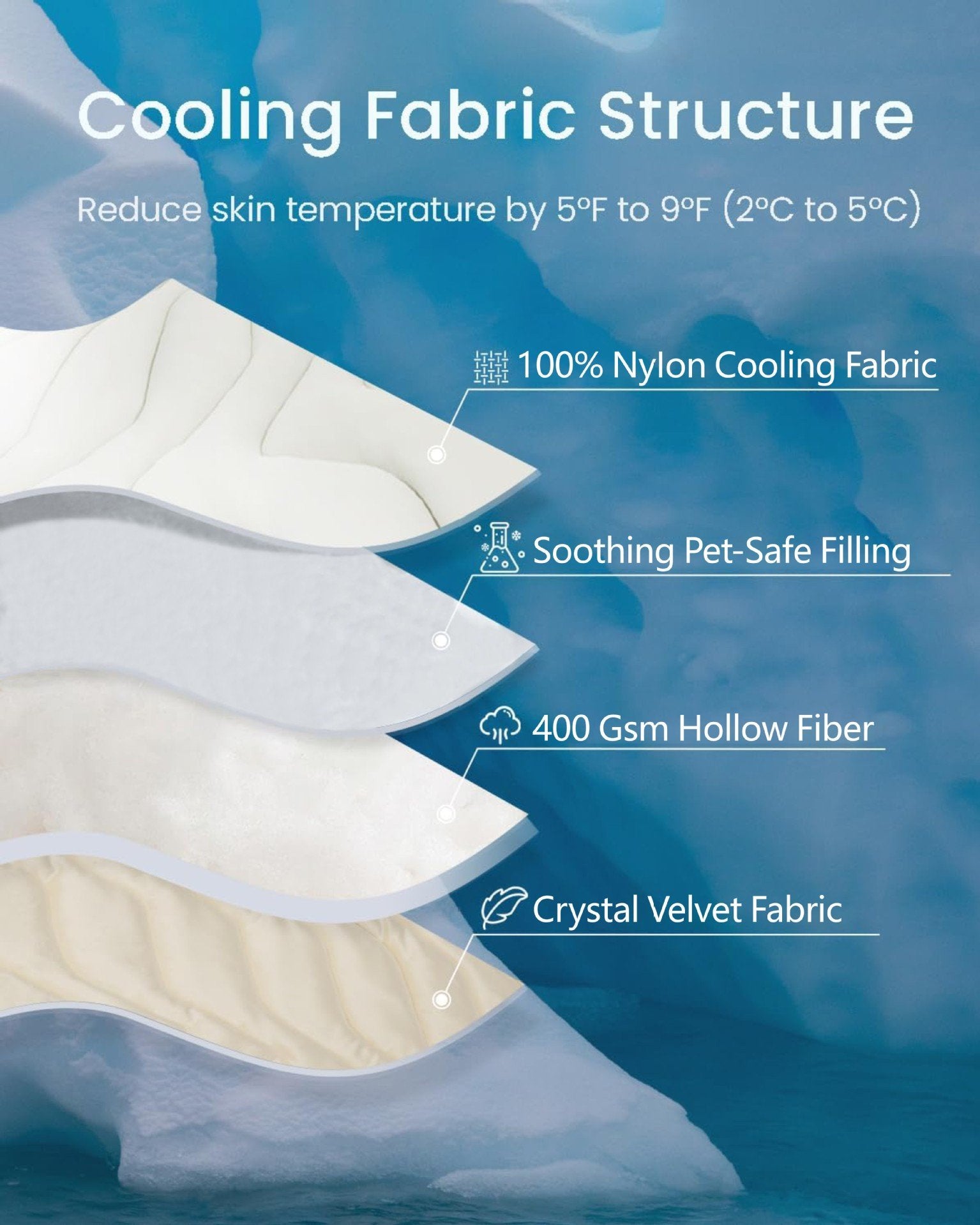 REVOLUTIONARY COOLING TECHNOLOGY: The dog cooling mat is equipped with revolutionary Japanese Arc-Chill Cool Technology Fabric, boasting a Q-MAX value of 0.48. This superior fabric efficiently dissipates your pet's body heat, providing exceptional cooling without the need for water, electricity, or refrigeration.