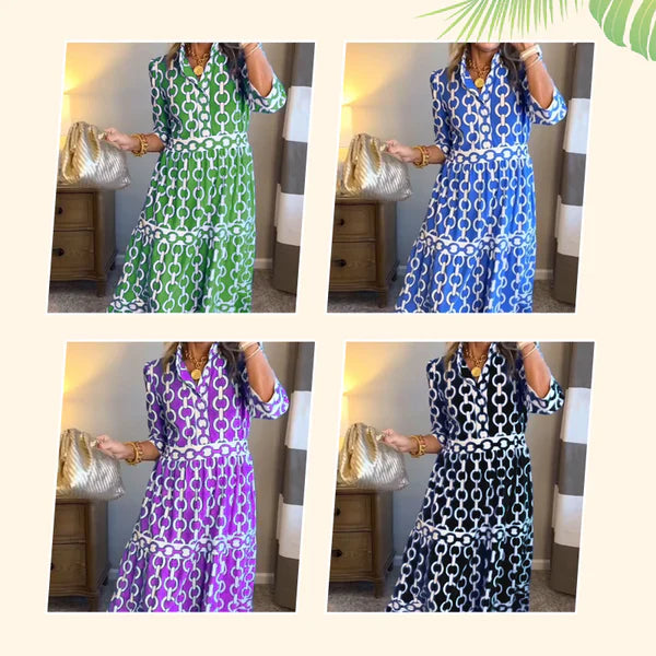 🎉Spring Specials Sale 50% OFF🌸💐Women’s Geometric Print V-Neck Maxi Dress