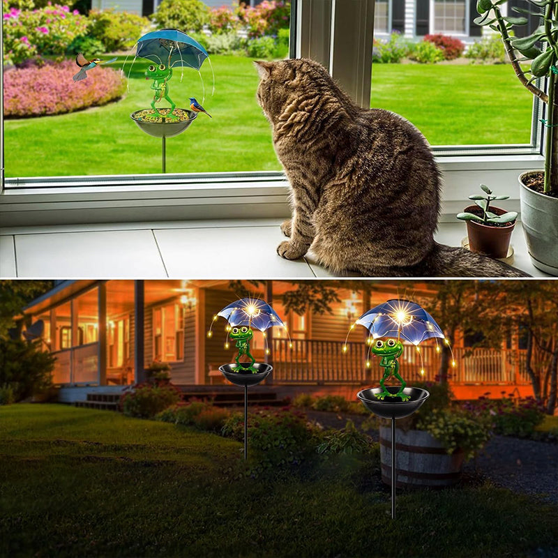 MAGICAL NIGHT LIGHT - The playful frog, with its mischievous tongue and umbrella, adds an imaginative touch to your garden and creates a magical light at night for a charming outdoor atmosphere.