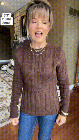 Imagine strolling through markets, peeping leaves, or sipping coffee in style. Our chocolate-hued cable knit with a cinched waist is the perfect combo of chic & comfy.