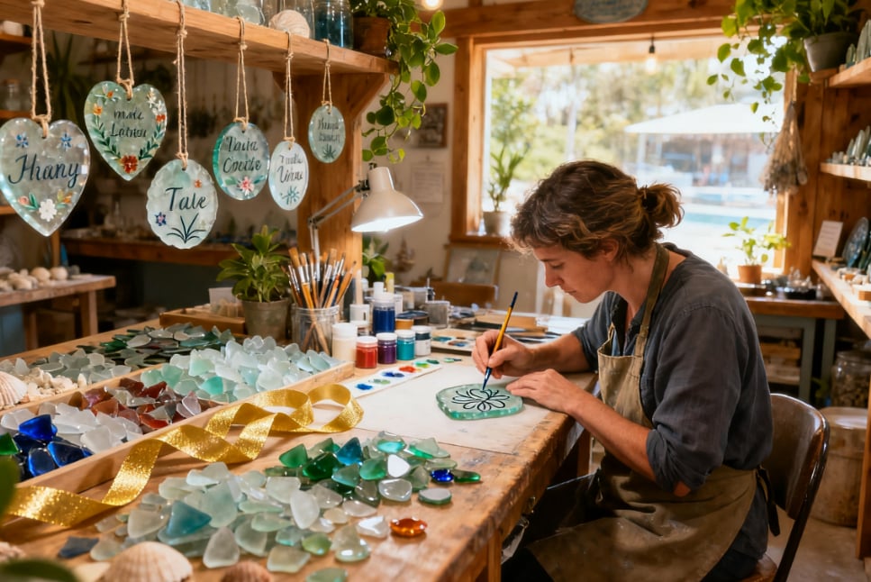 🎉Celebrate the warmth of togetherness with this heart-shaped sea glass family ornament!