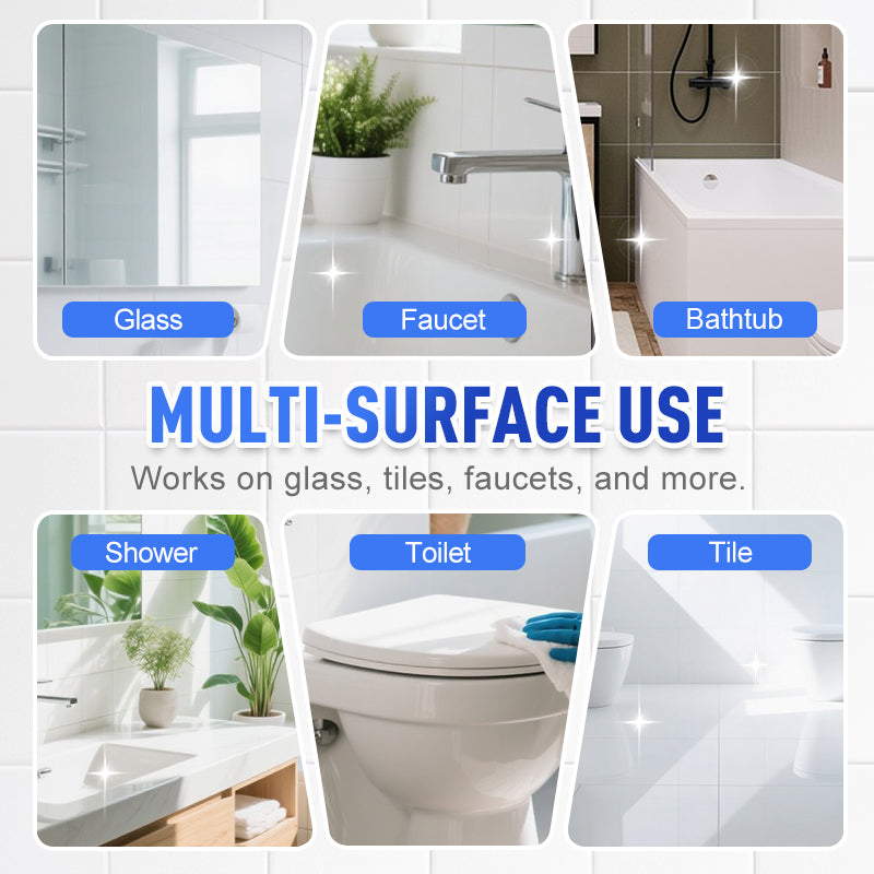 DEEP-CLEANING POWER: High-concentration formula clings to surfaces, breaking down even the toughest hard water stains. The advanced emulsion penetrates deeply, dissolving limescale and mineral deposits without scrubbing. Perfect for glass showers, faucets, and tiles.