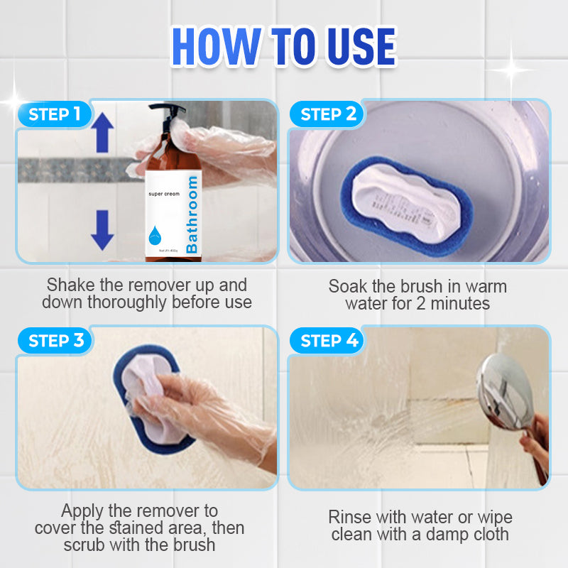 FREE ERGONOMIC CLEANING BRUSH: Comes with a soft, flat-sponge brush for gentle yet effective scrubbing. It can glide over glass and tiles, lifting stains without scratching. Its compact design fits into tight spaces, ensuring thorough cleaning around edges and corners.