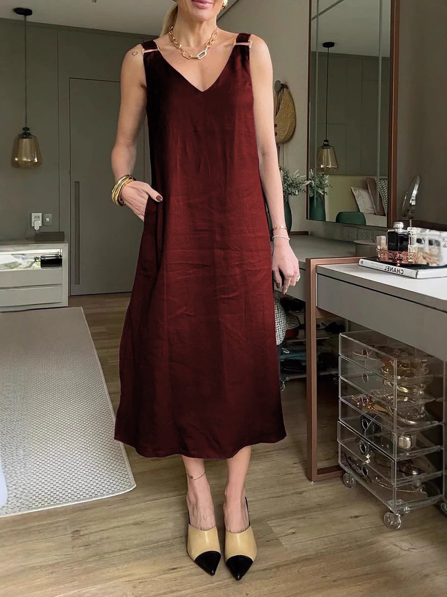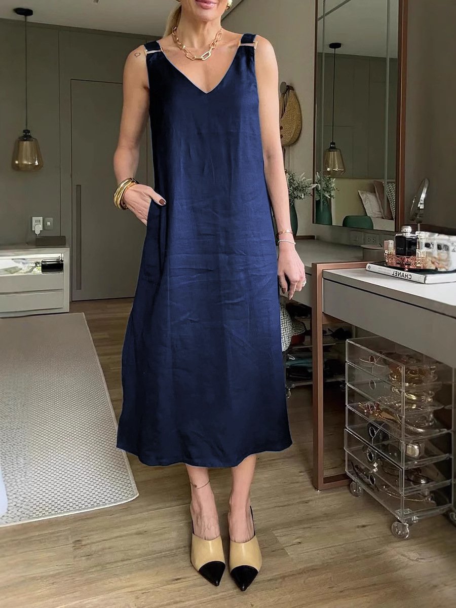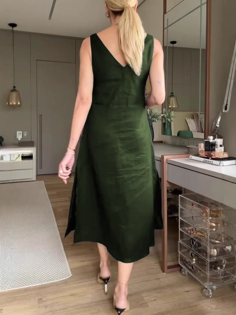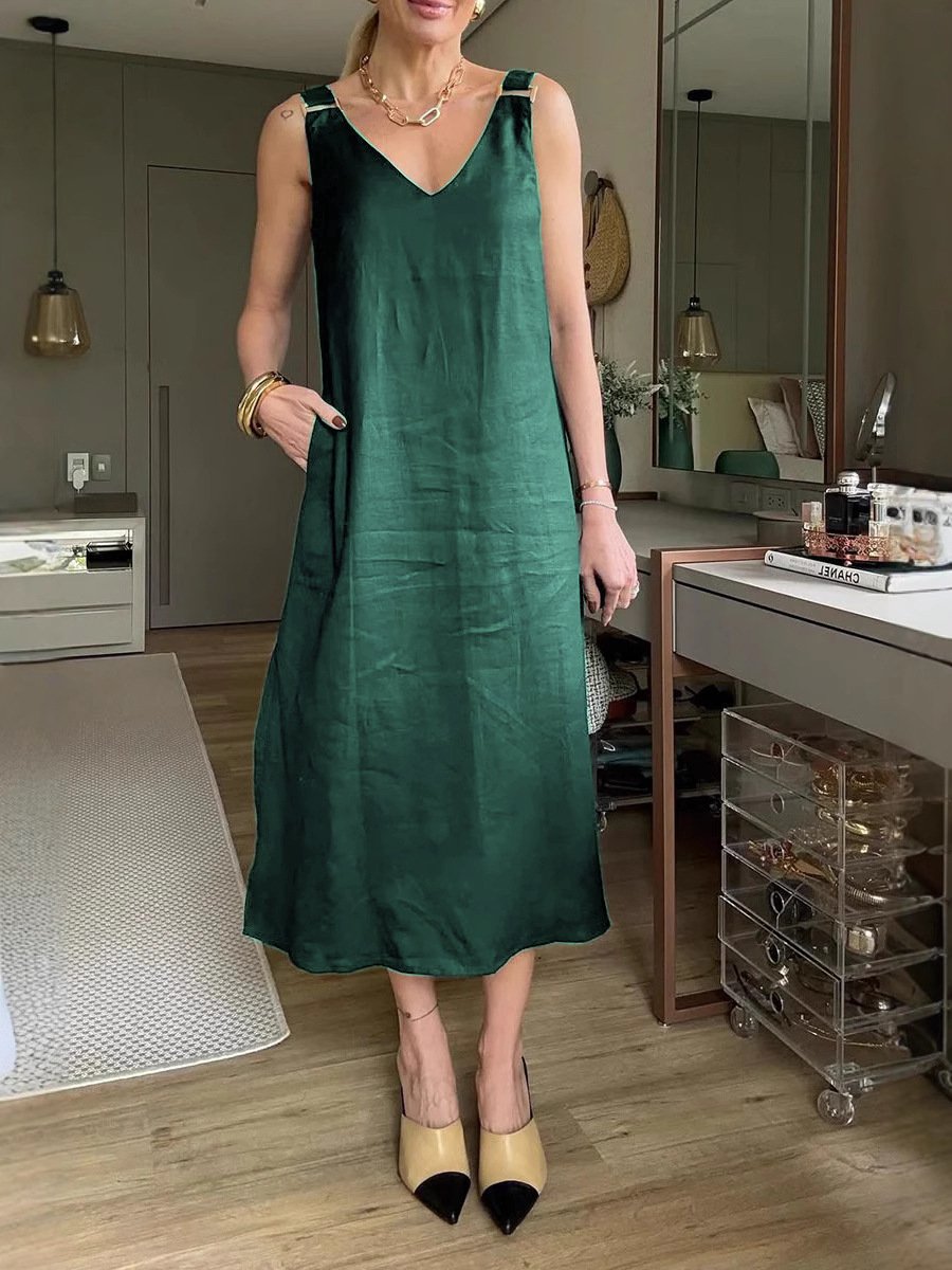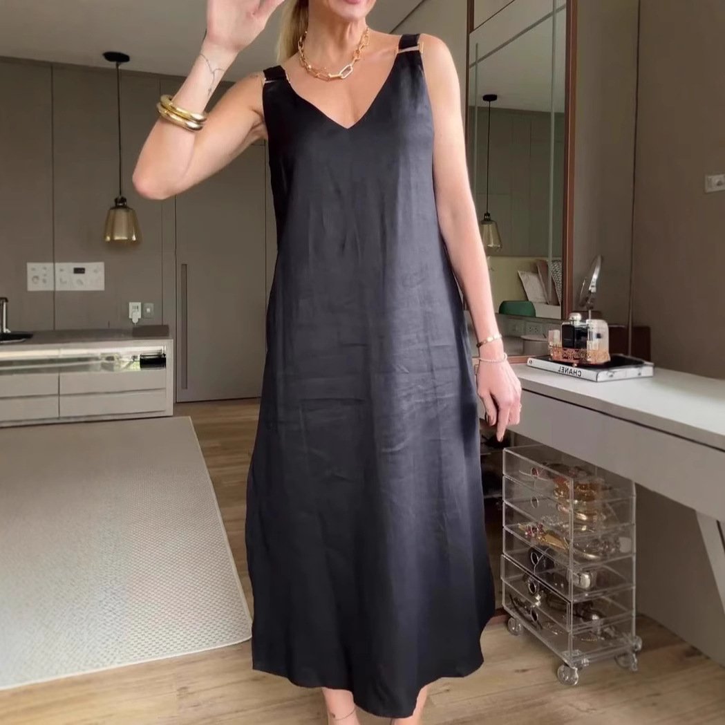 Solid-Color Loose V-Neck A-Line Halter Dress 💃