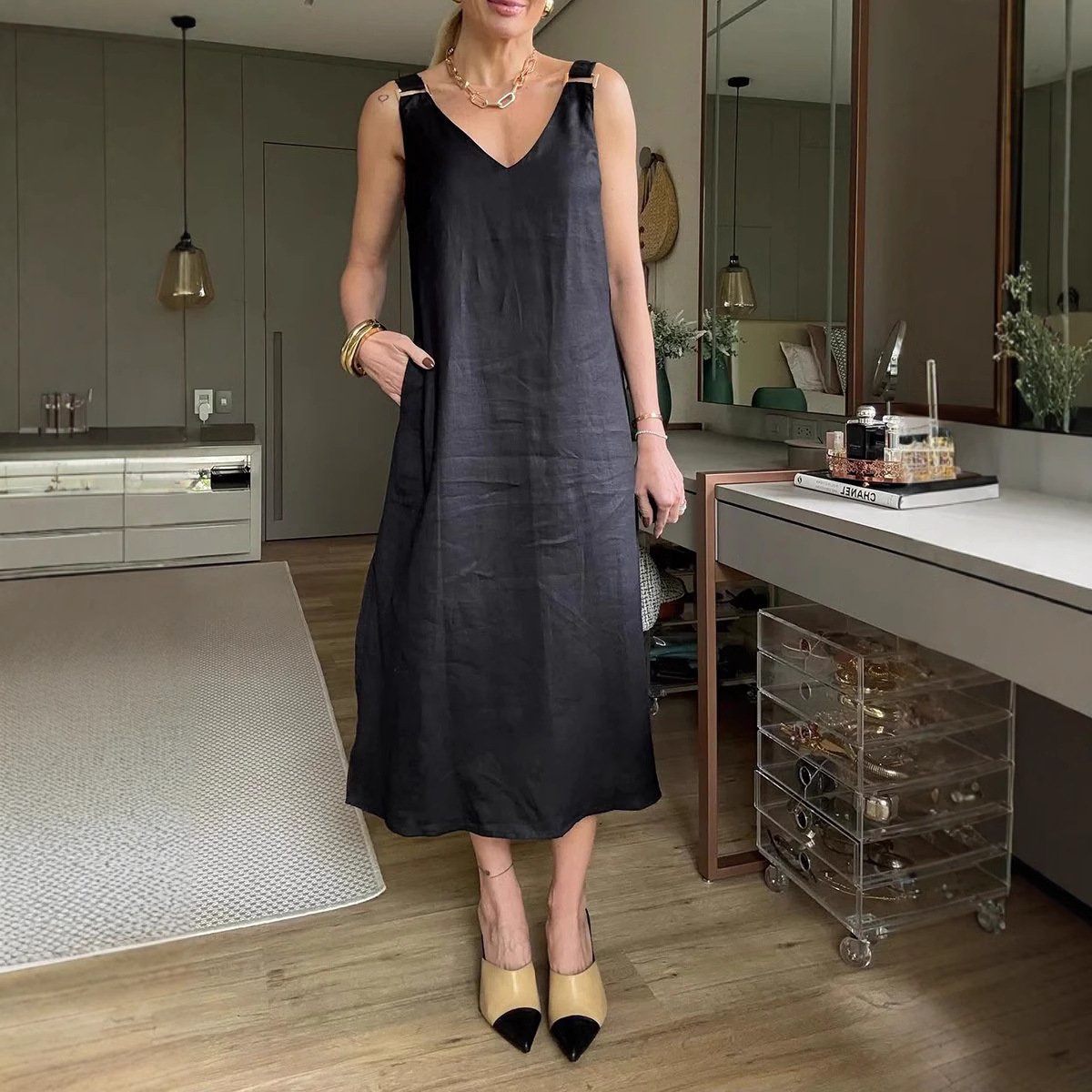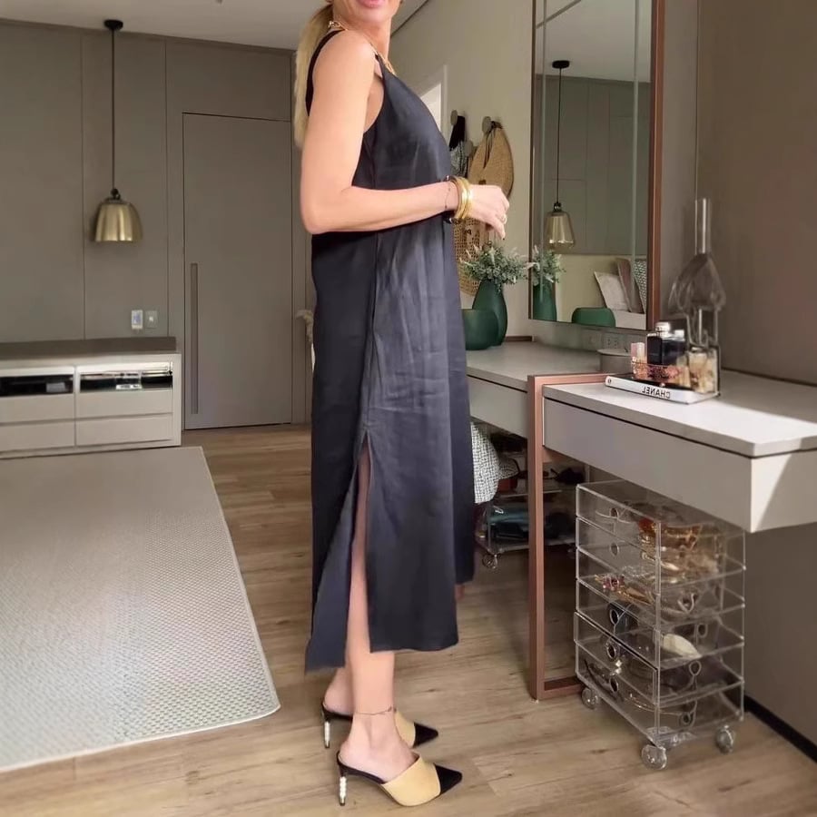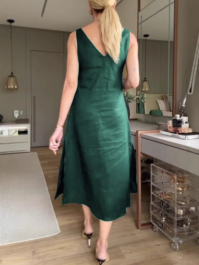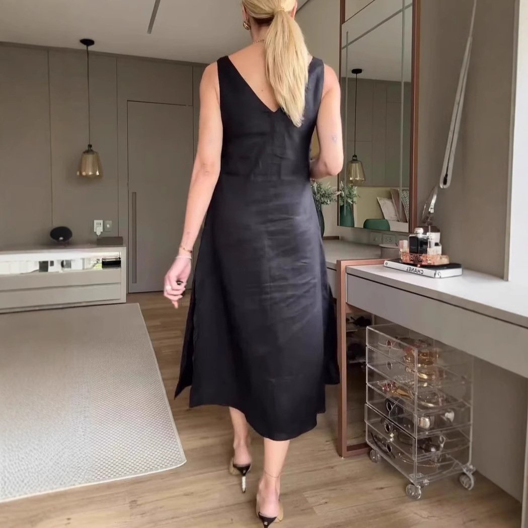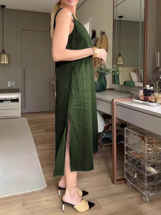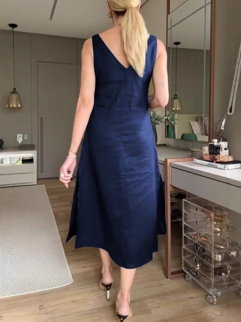 Solid-Color Loose V-Neck A-Line Halter Dress 💃