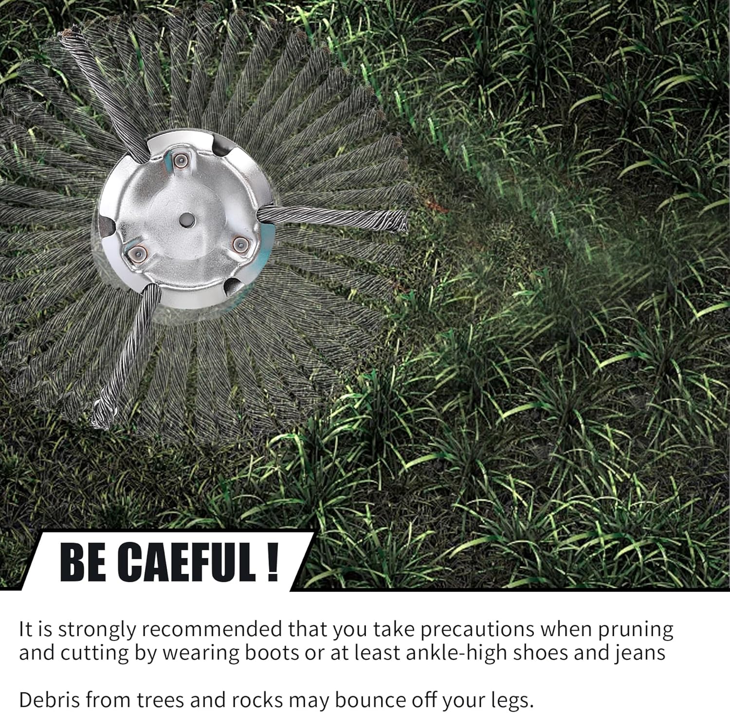 This wire weed blade head has been inspected for performance, safety and quality. Wear safety equipment before using the steel wire weed trimmer head. Appropriate protective clothing and safety glasses must be worn.