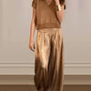 2-PIECE SUIT: The suit includes a gold round-neck short-sleeve top and glossy high-waist wide-leg pants, offering a complete and coordinated outfit, and keeping you up-to-date with the latest fashion trends.