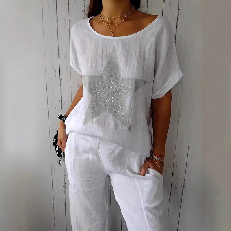 Package includes: 1 * Women's Casual Star-Print Loose-Fit T-Shirt