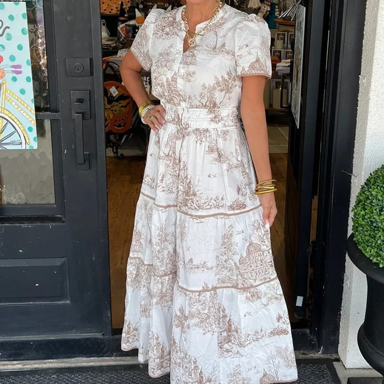 EXQUISITE FLORAL PRINT DESIGN - The dress boasts a stunning floral print that captures the essence of classic ethnic artistry. Each pattern is meticulously crafted to reflect intricate designs, inspired by traditional motifs from various cultures.